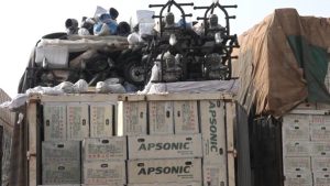Caisses de motos saisies au Burkina Faso. Crédit : Ph Serge Bassolé, 3TV